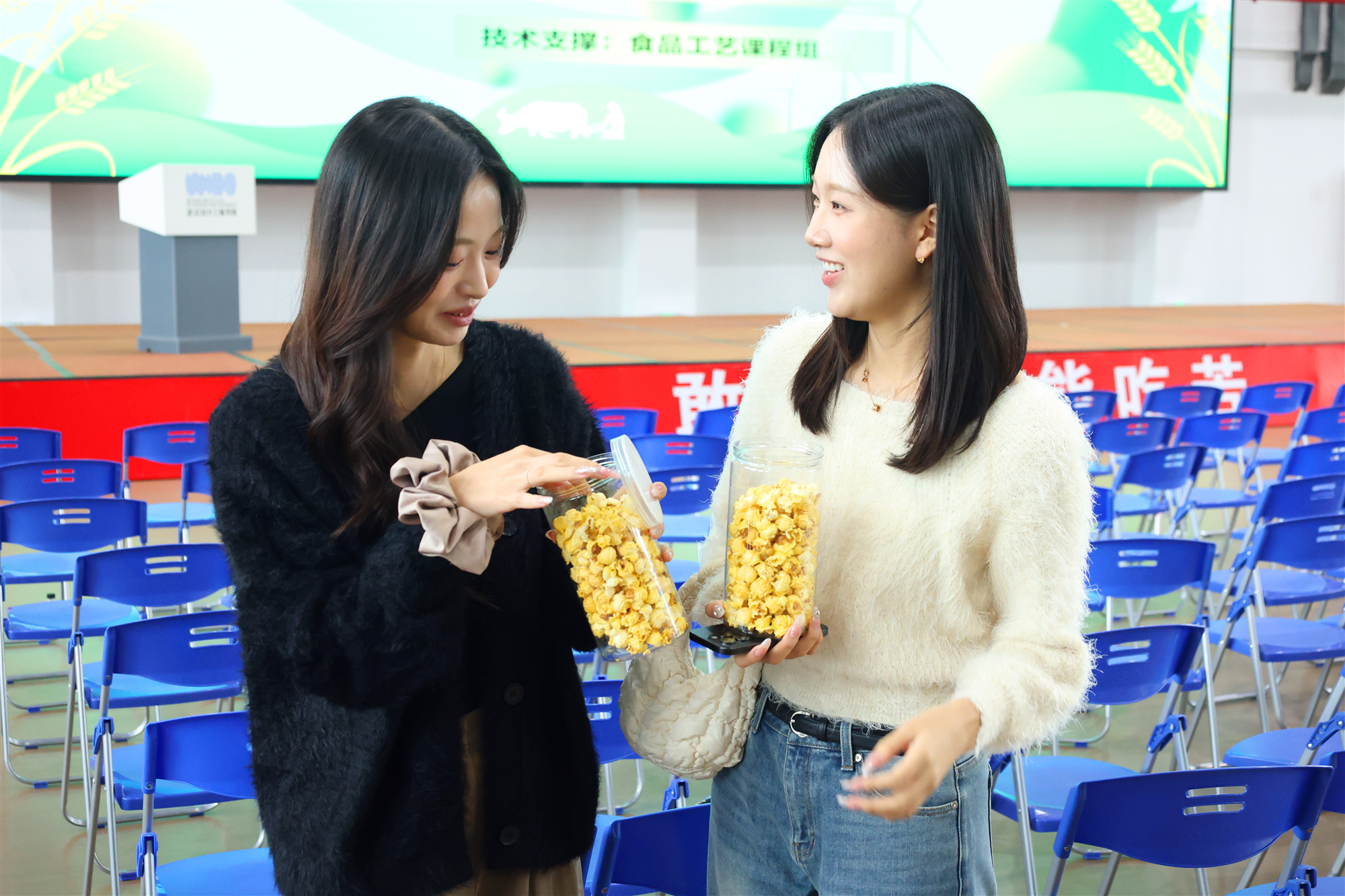 当天晚上,本届食品文化节组织的“食品知识闯关”比赛在汇演中心陆续开展,活动现场人头攒动,“食品知识竞答”“看图猜美食”“美食奇趣盒”“美食拼图挑战”……800余名同学排队竞相体验美食趣味游戏,在普及收获食品文化知识的同时,还能赢取礼品。