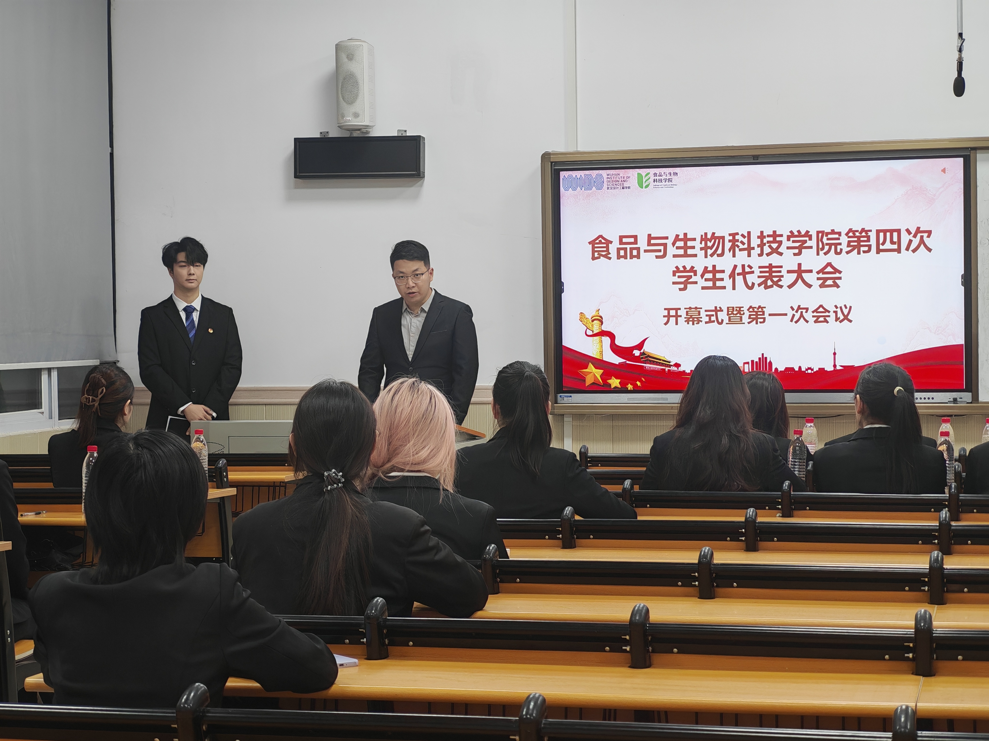 本网讯(通讯员 黎子琪)2025年11月11日17点,武汉设计工程学院食品与生物科技学院在临湖轩B4039会议室隆重召开了第四次学生代表大会。