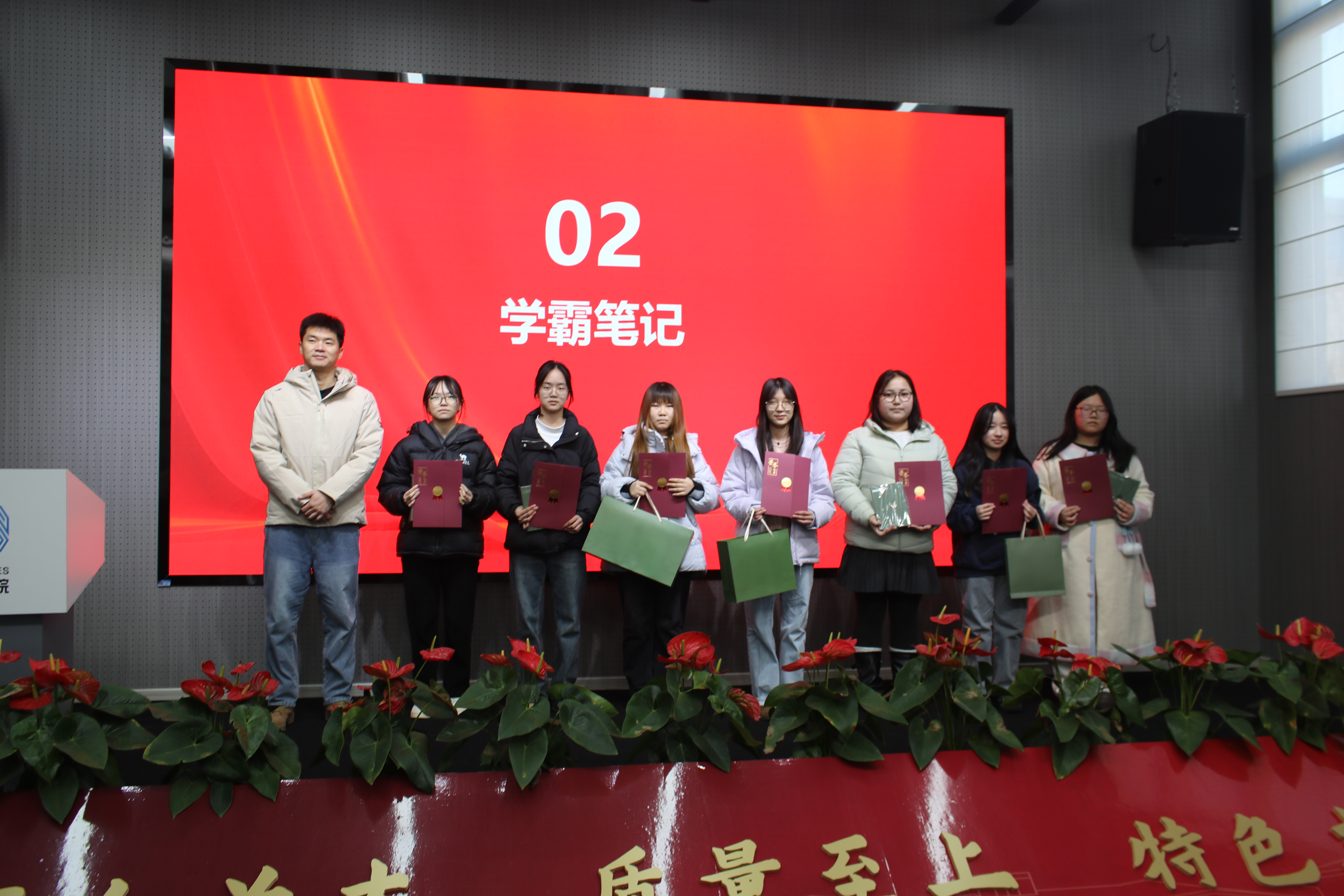 本网讯(通讯员 马冲)为进一步加强学院学风建设,激发学生主动学习的内生动力,营造勤学善思、笃行致远的育人氛围,我院于1月8日在红安校区H1-1019汇报厅顺利召开学风建设月闭幕式暨颁奖仪式。本次活动由马冲老师主持,学院党总支书记、院长付晓燕,党总支副书记何高翔,分团委书记张智以及 24、25级本专科辅导员出席此次活动,与获奖学子、学生代表共同见证学风建设的丰硕成果,凝聚成长奋进的磅礴力量。