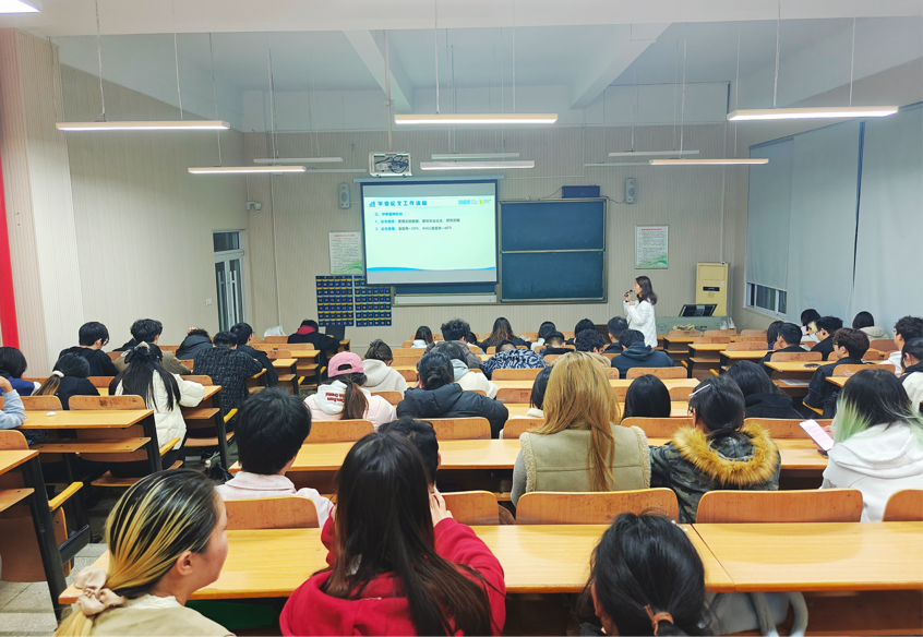 在随后的环节中,付晓燕院长和郑妍老师分别面向两个会场的学生介绍了2027届毕业生实习实训安排及毕业论文相关事宜,明确了时间节点、任务要求与注意事项,帮助同学们提前做好学业与就业发展的整体规划,为后续顺利完成实习与毕业工作奠定基础。