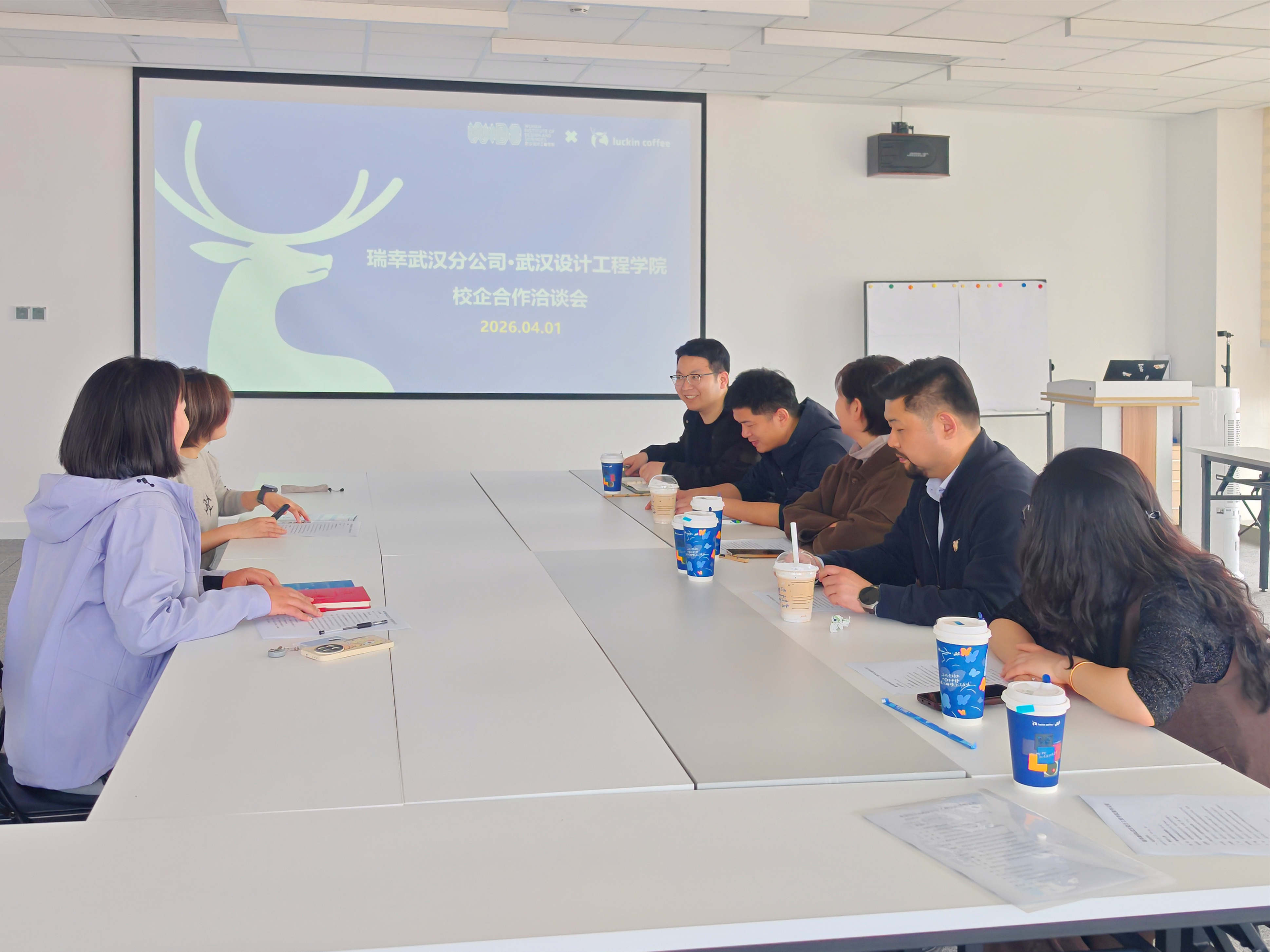 本网讯(通讯员 张智)为精准对接食品行业人才需求,持续深化产教融合、校企协同育人,切实拓宽毕业生就业渠道、提升就业质量,4月1日下午,武汉设计工程学院食品与生物科技学院党总支书记、院长付晓燕带队,一行6人赴瑞幸咖啡(武汉)有限公司(以下简称“瑞幸咖啡”)开展访企拓岗促就业专项交流活动,主动搭建校企合作桥梁,共商人才培养与就业合作。同行人员包括学校产学研中心副主任王欣,食品与生物科技学院副书记何高翔、办公室主任王影、分团委书记及就业联系人张智,辅导员刘昊。瑞幸咖啡武汉分公司HR Head曾莉、校企合作负责人杨晶晶热情接待并参与座谈交流。